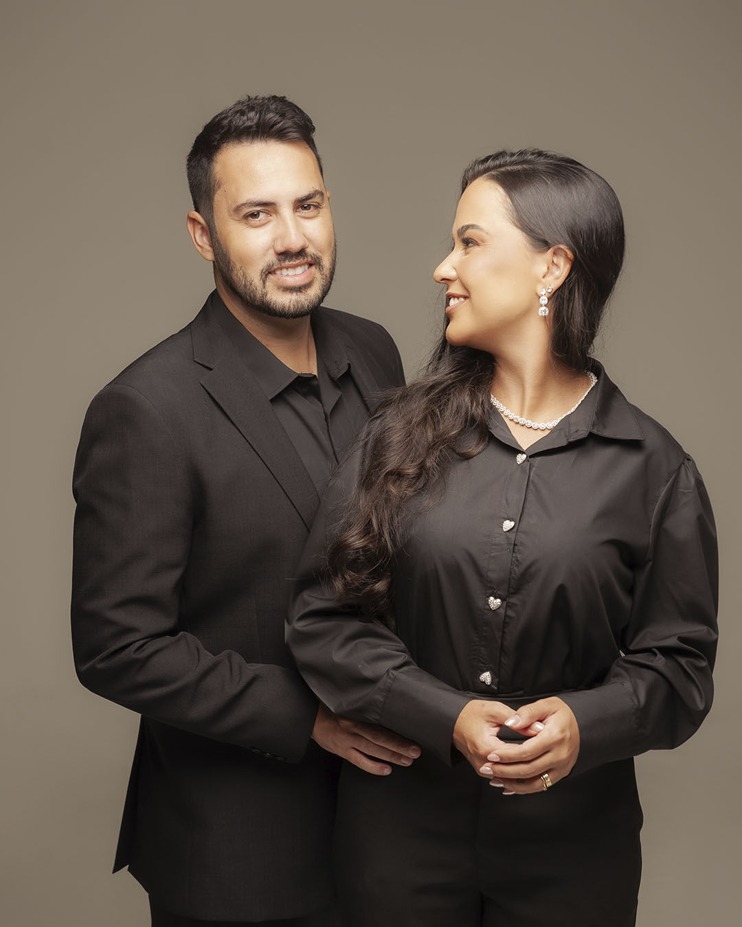 Minha direção acontece em camadas: estrutura do corpo, mãos e, por fim, expressão. Trabalho com instruções curtas e respiros entre elas para que a postura se assente com naturalidade — é nesse intervalo que surgem expressões úteis como confiança e proximidade.